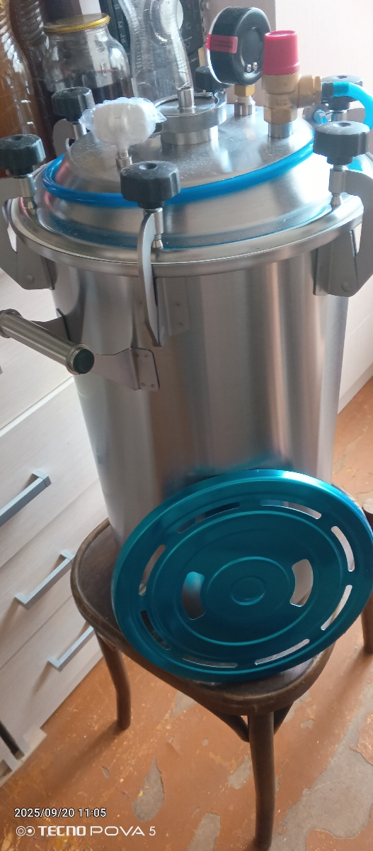 Отличный автоклав, за разумные деньги. Минус, нет фальшдна на ножках, для работы с ТЭНом. Хорошо от моего автоклав подойдëт (шестое фото) диаметр аналогичный. Есть небольшой непровар гильзы термометра (фото три) при проверке оказалось всë отлично,не пропускает. Если измерять температуру в штатной гильзе, разница есть, я замеряю из центра автоклава. Есть минус моего замера, при работе,потеря центральных банок. Дышащий клапан я перенëс и установил кран, для работы с реторт пакетами. Автоклав ЗАГОТОВЩИК рекомендую, сказать честно, консервы ещë не делал, но как только получил его первого февраля, гоню самогон, уже шестой день. Просто мой перегонный куб, маловат. Заказали 50 литров настойки, вот и тружусь.