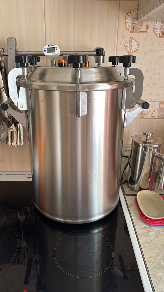 Отличный автоклав! Мой первый опыт. Спасибо за терпение консультантов,я со страху весь телефон им оборвала)))),насмотрелись как Малиновка у людей взрывалась и очень уж испугалась. Мне очень нравится, готовлю на пару. Не надо смотреть постоянно,это правда,как только начинает шипеть,я уже понимаю температура ближе к 100, когда начинает клапан Шуметь значит подходит ближе к нужной температуре,тут я уже поглядывая,как только станет 119,убавляю плитку,и автоклав сам уже держит данную температуру. У меня больше 119,5 не даёт подниматься,что мне очень нравится, значит система работает. А градусник я проверила на кипятке, больше 98,7 не поднимается,так что значит всё правильно. Поэтому рекомендую, однозначно,мне кажется проще простого. Термометр и клапан срабатывают всё как и должно быть,я очень рада,что после долгих выборов купила именно этот. И ещё,я когда насмотрелись на взрывы, отрывание дна у некоторых других производителей,я поняла,что чем меньше кранов,и тд,тем лучше, меньше швов. Ещё плюсом был металл для меня,т к.я хочу, чтоб служил мне и служил, никаких тэнов,кранов, мономеров. Когда вижу рыжики на металле,добавляю щепотку лимонки когда делаю закладку и всё уходит, чистенько и красиво. Пишу много, для тех,кто как и я не знают,что выбрать. Возможно есть и лучше,не могу сказать,но этот аппарат точно хорош!