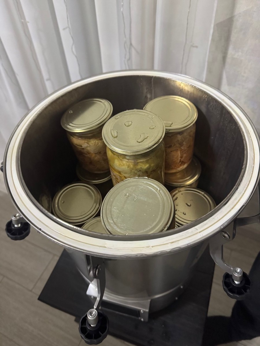 Получила хорошо упакованным, в срок) все на месте, сюрпризом были крышки и наклеечки на банки, спасибо большое, это приятно, пробным была говядина, следом пошла греча по-купечески, завтра будет утка, очень замечательный помощник, залил, загрузил, нажал и все, спасибо производителю и доставке за работу