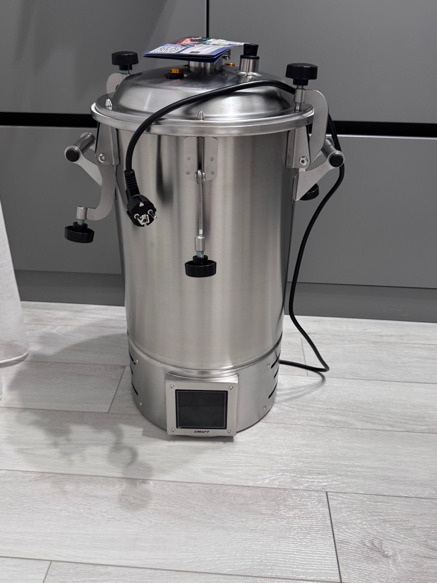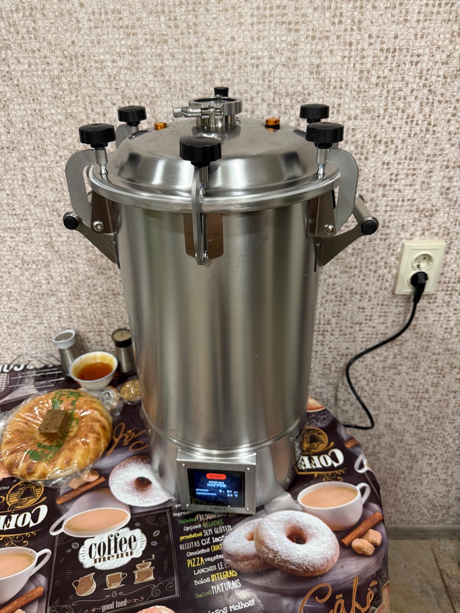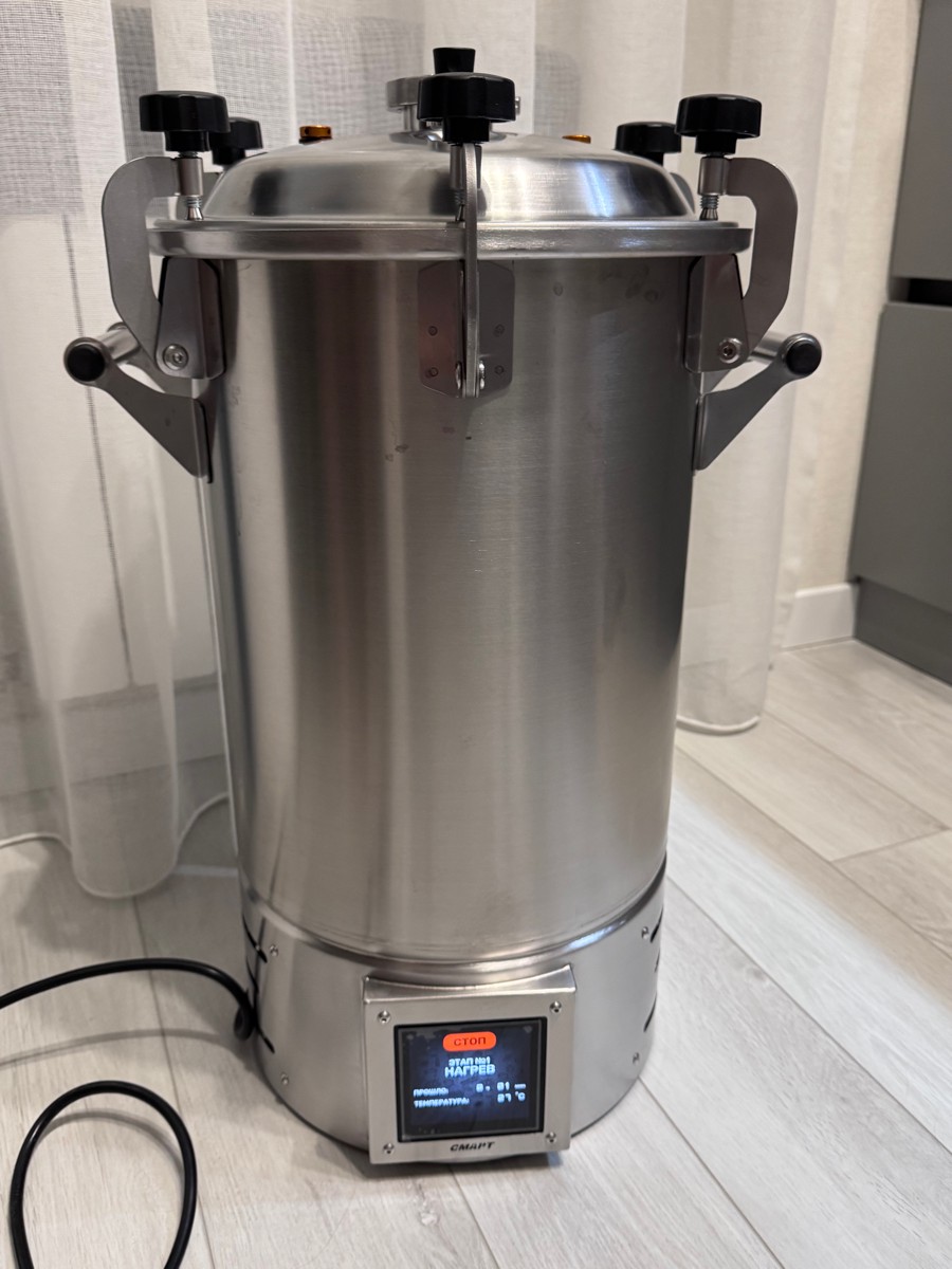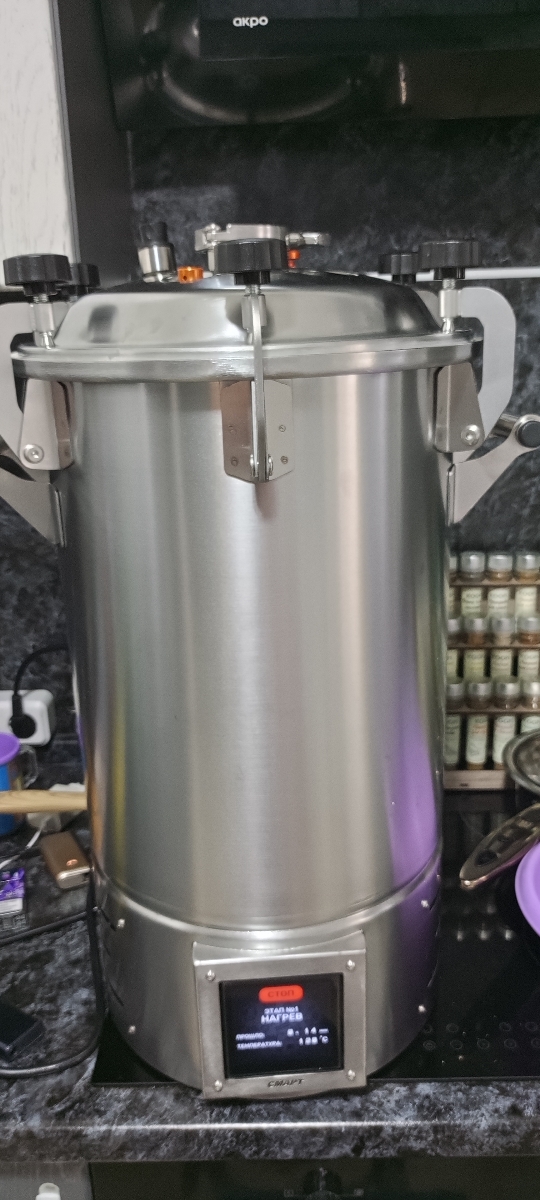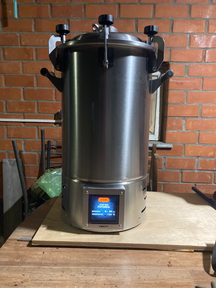 Начну с предъистории, в сентябре взорвался автоклав WEIN(видео прикладываю), я получил ожог ноги и лба. Но, без автоклава мне скучно жить. Главное. для меня безопасность. Купил автомат, полный автомат. Доволен, не надо к нему приближаться во время работы, поэтому теперь стерилизую вне дома, под навесом, а контроль по айфону. Вот так, как-то.