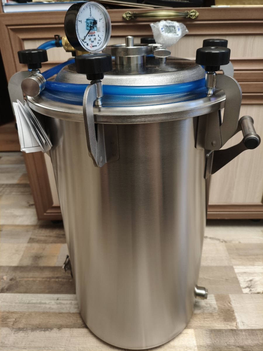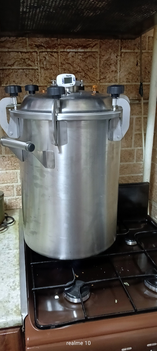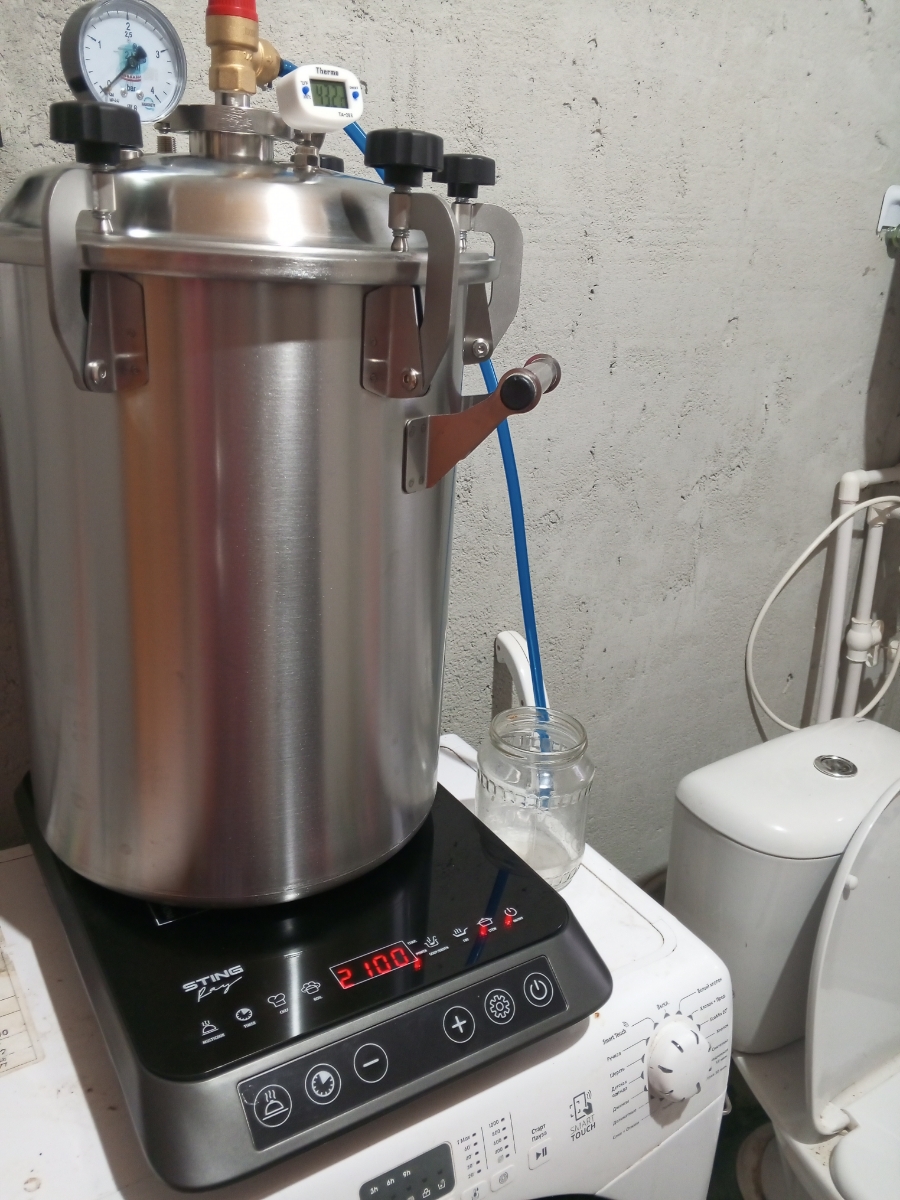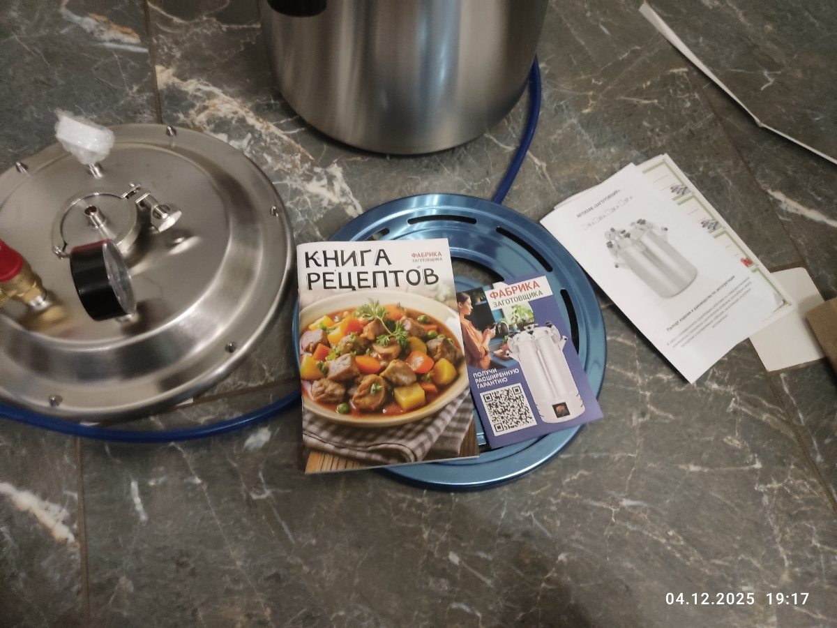 Доставка быстрая, упаковка шикарная. Проверили на приготовлении тушёнки из гуся. Дополнительно покупали зажимы на крышки, с ними все равно влезло 24 баночки по 500 гр( но очень плотно)в 3 ряда, Готовили не на пару как советуют для крышек под закрутку, воды наливали на пол сантиметра выше верхнего ряда.Все прошло по плану. Через 8 часов после выключения вода ещё была 53 градуса, горячо чтобы доставать. читала что добавляют лимонку в воду, чтобы не было ржавчины после первого раза, но и без этого все стеночки чистые.Не ленитесь сильнее закручивать клапан на дистиллятор, у нас он подтравливал из-за слабой закрутки, устранили сразу как увидели потери воздуха . К покупке советую.